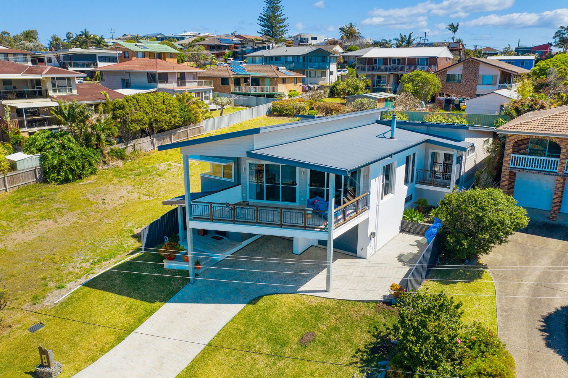 Nestled on the picturesque Bonny Hills headland, this magnificent modern home offers unparalleled ocean views and luxurious living.