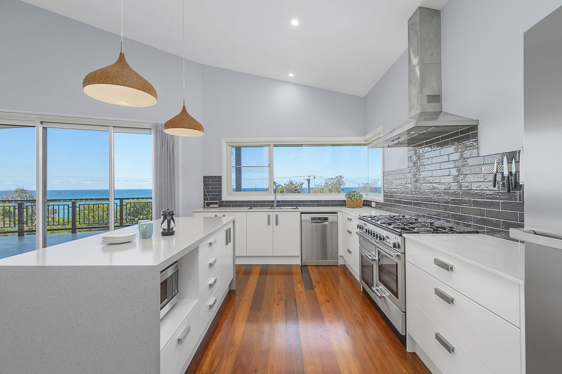 - Kitchen with, gas cooker, butler's pantry, & ocean views