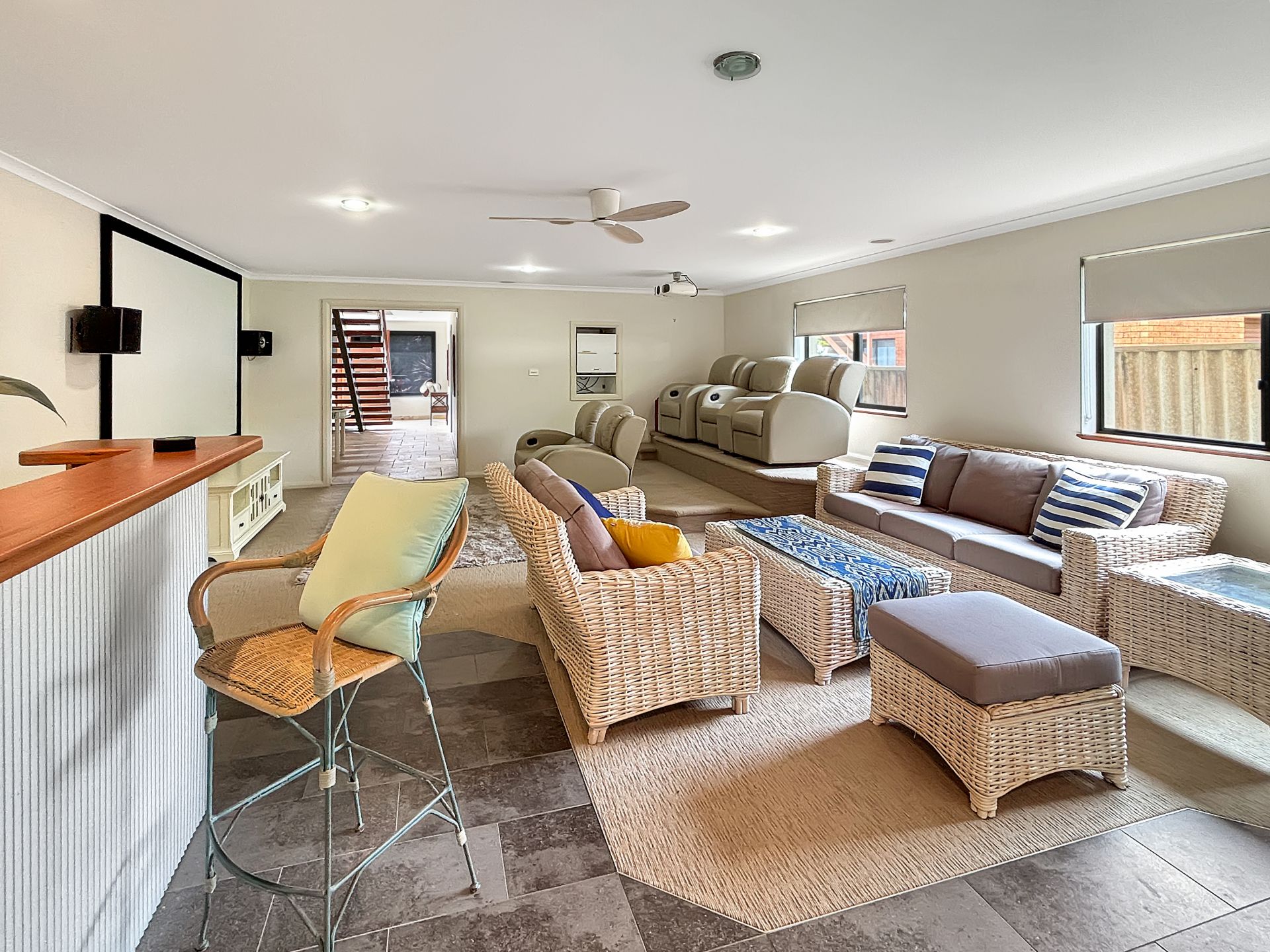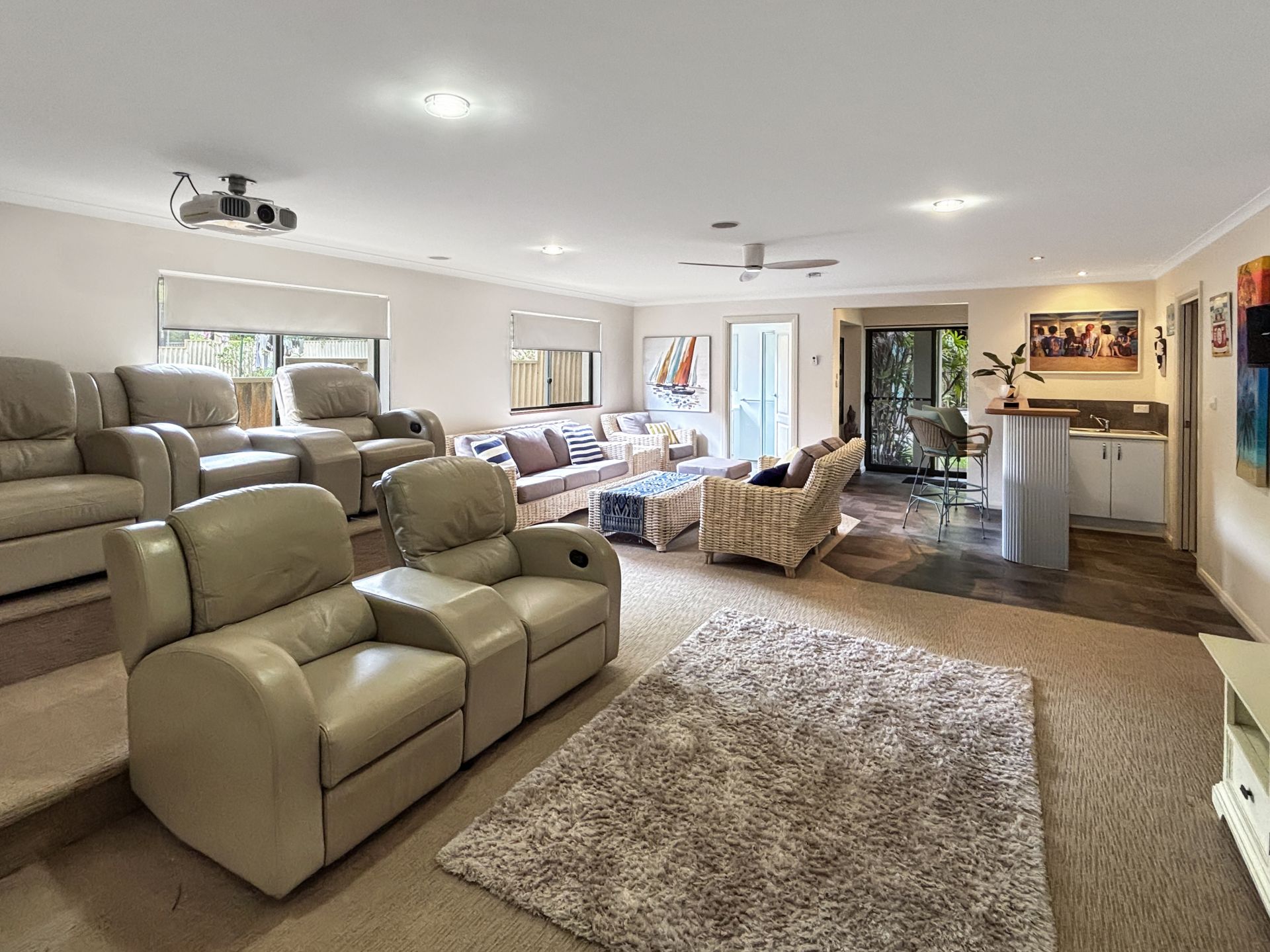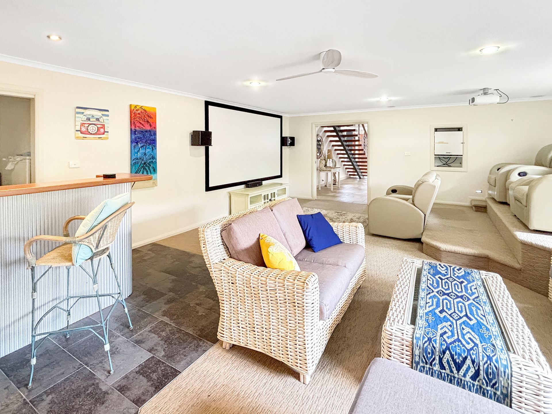 - Built-in theatre system, large projector screen and surround sound