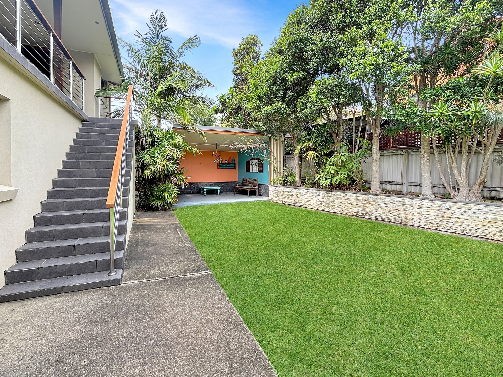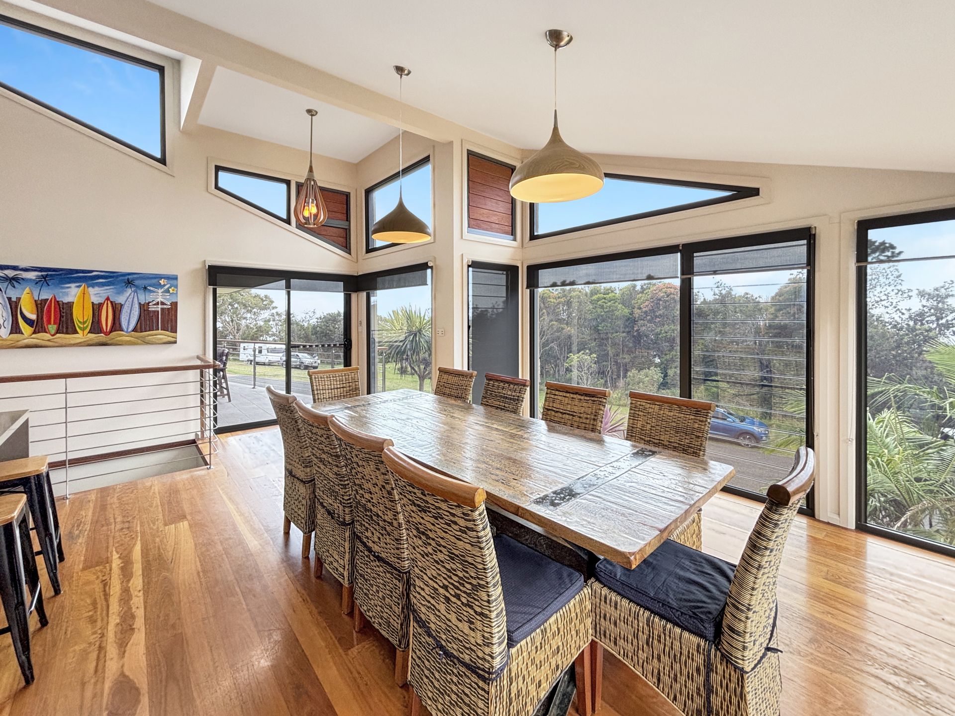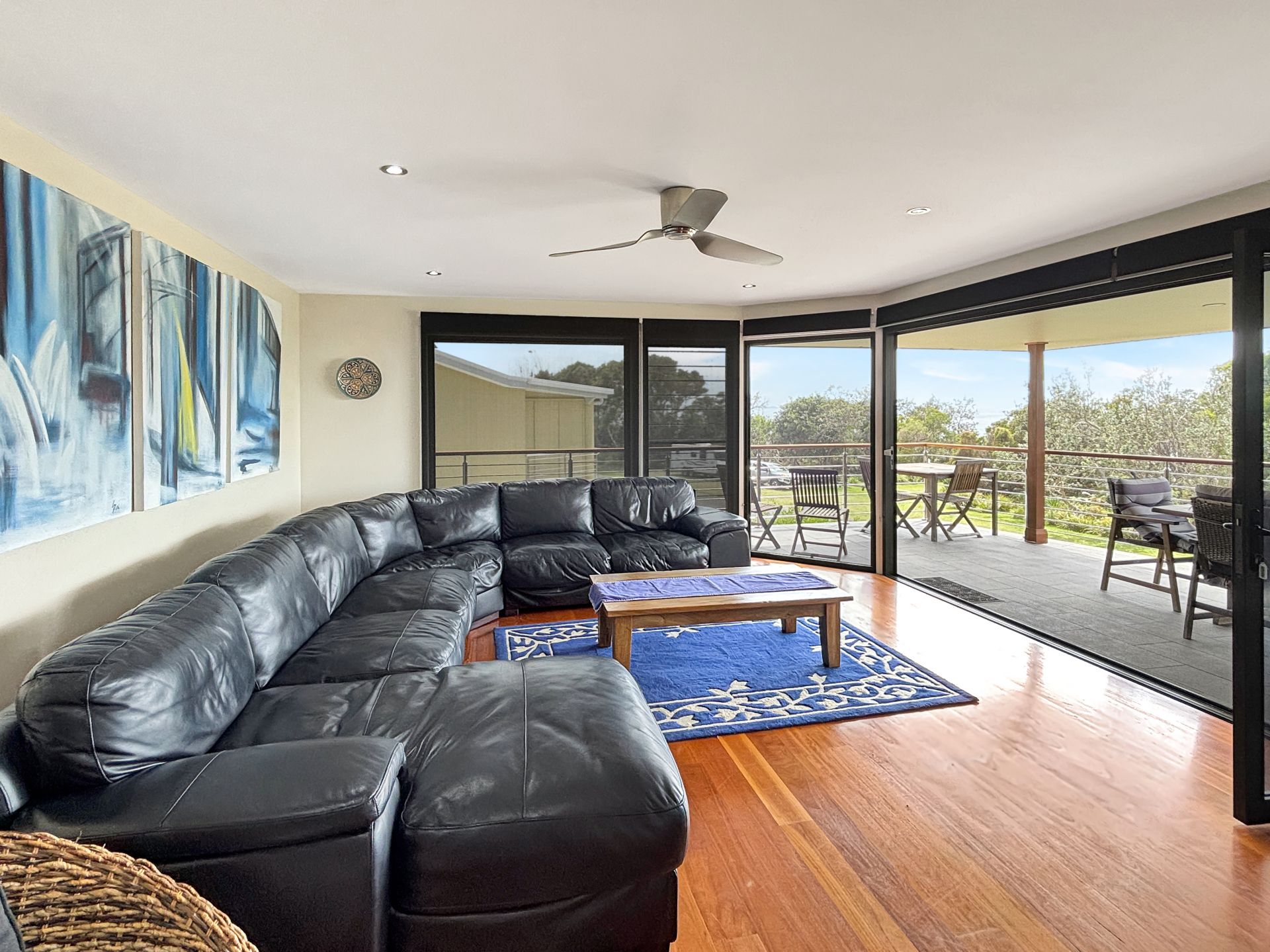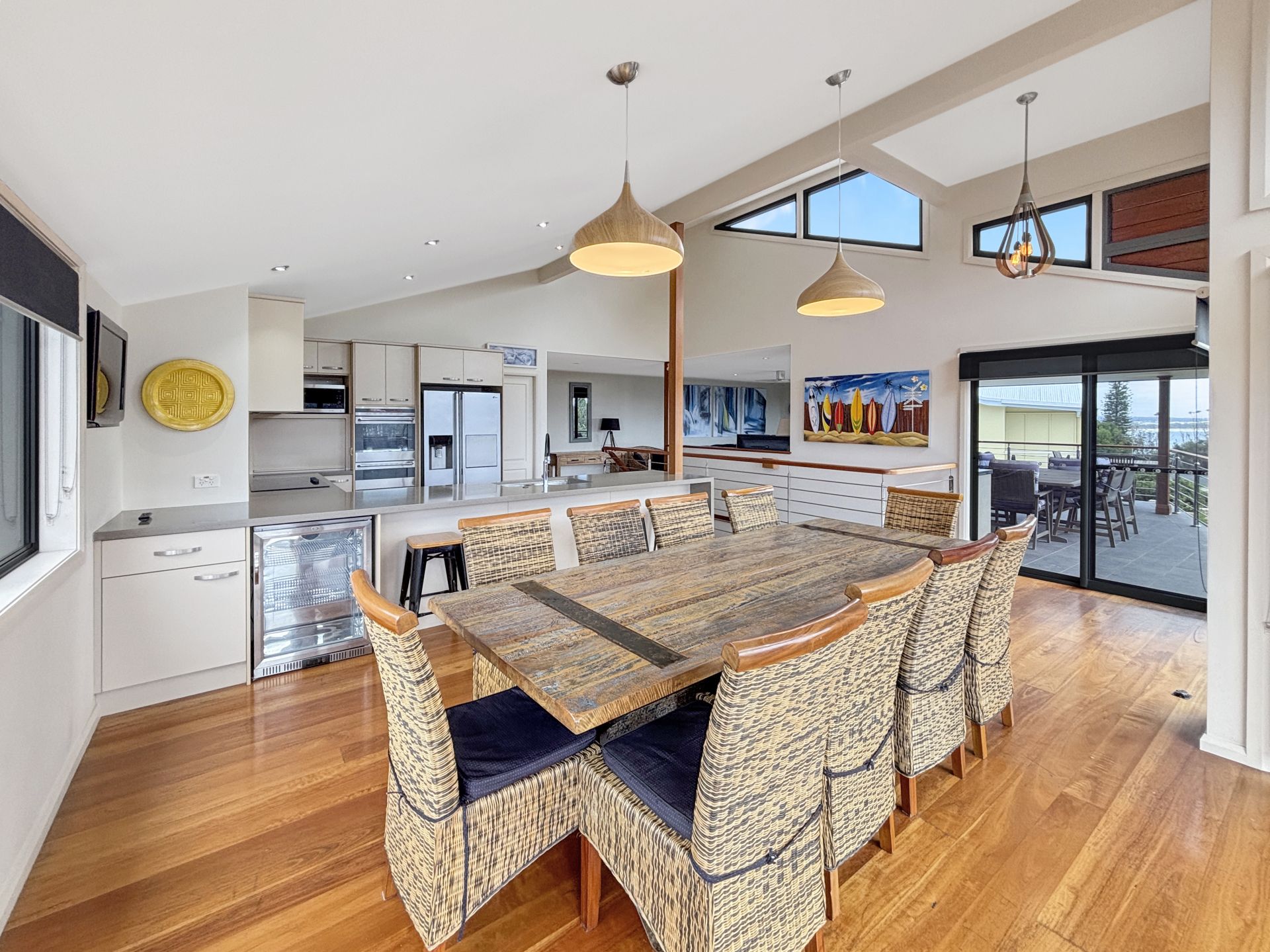 - Stacker doors open to a large outdoor entertaining area