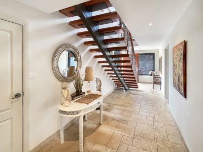 Discover luxury living at its finest in this furnished 5-bedroom home, perfectly positioned to capture breathtaking ocean views from a quiet, northeast-facing location just a short 500m walk from Bartlett Beach. This property is the epitome of style, space, and sophistication, offering every modern convenience for comfortable coastal living.
