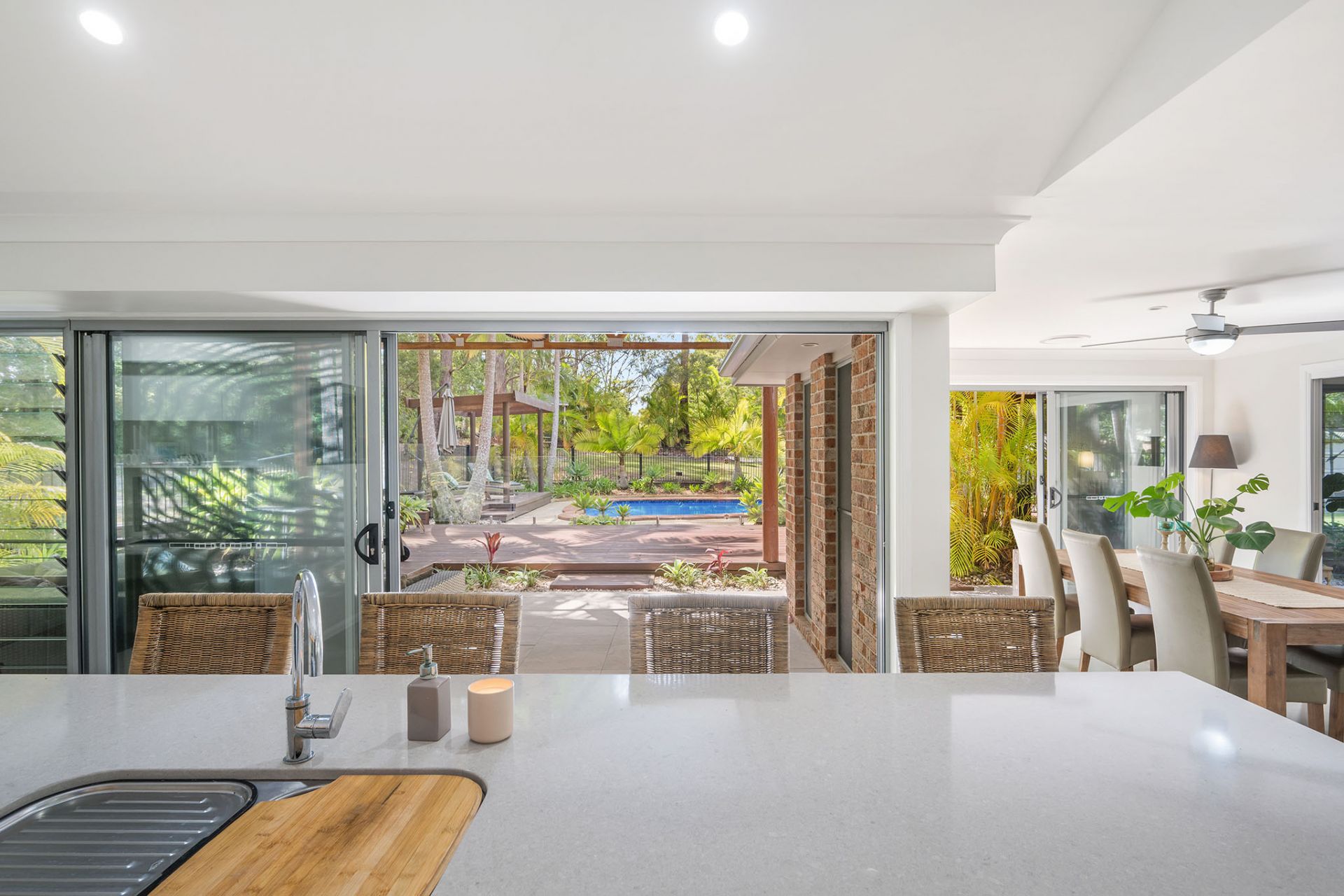 - Open plan kitchen, dining and living area flowing to outdoor entertaining and pool