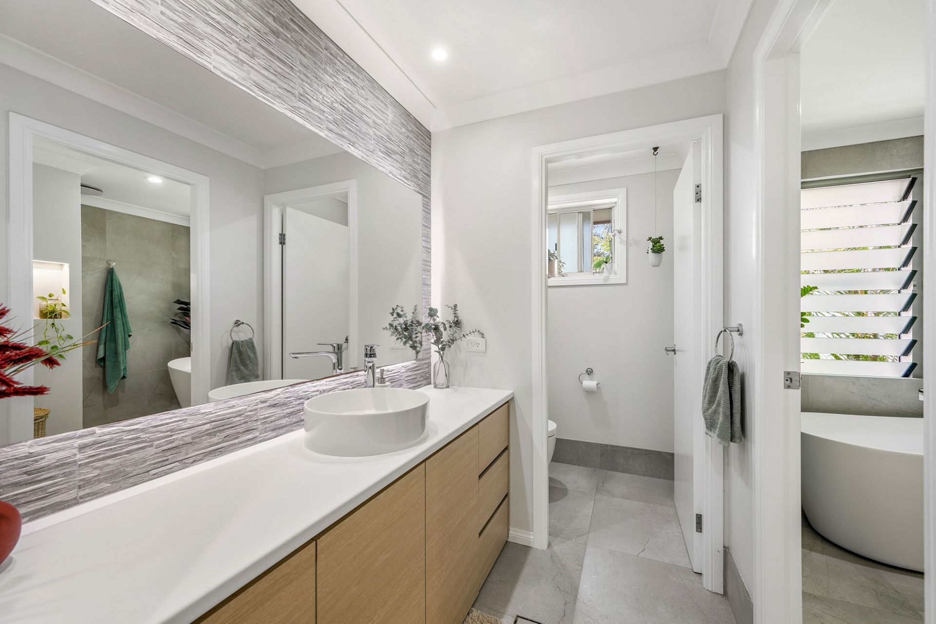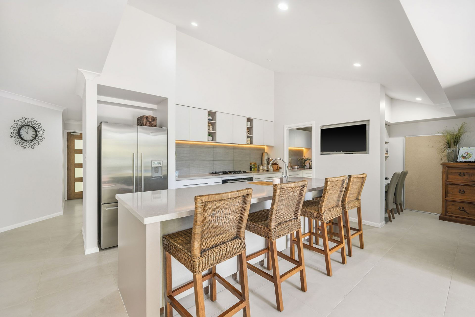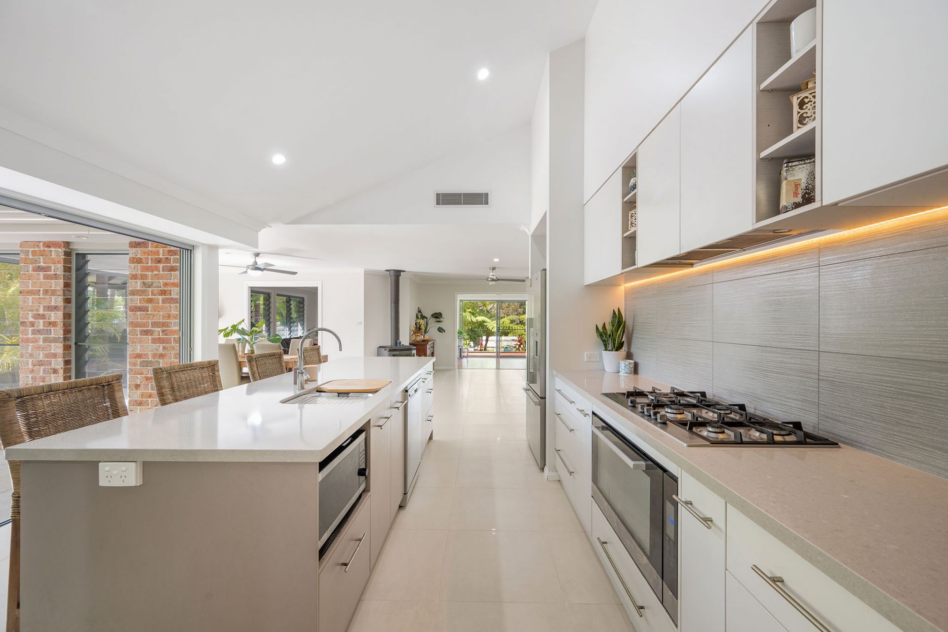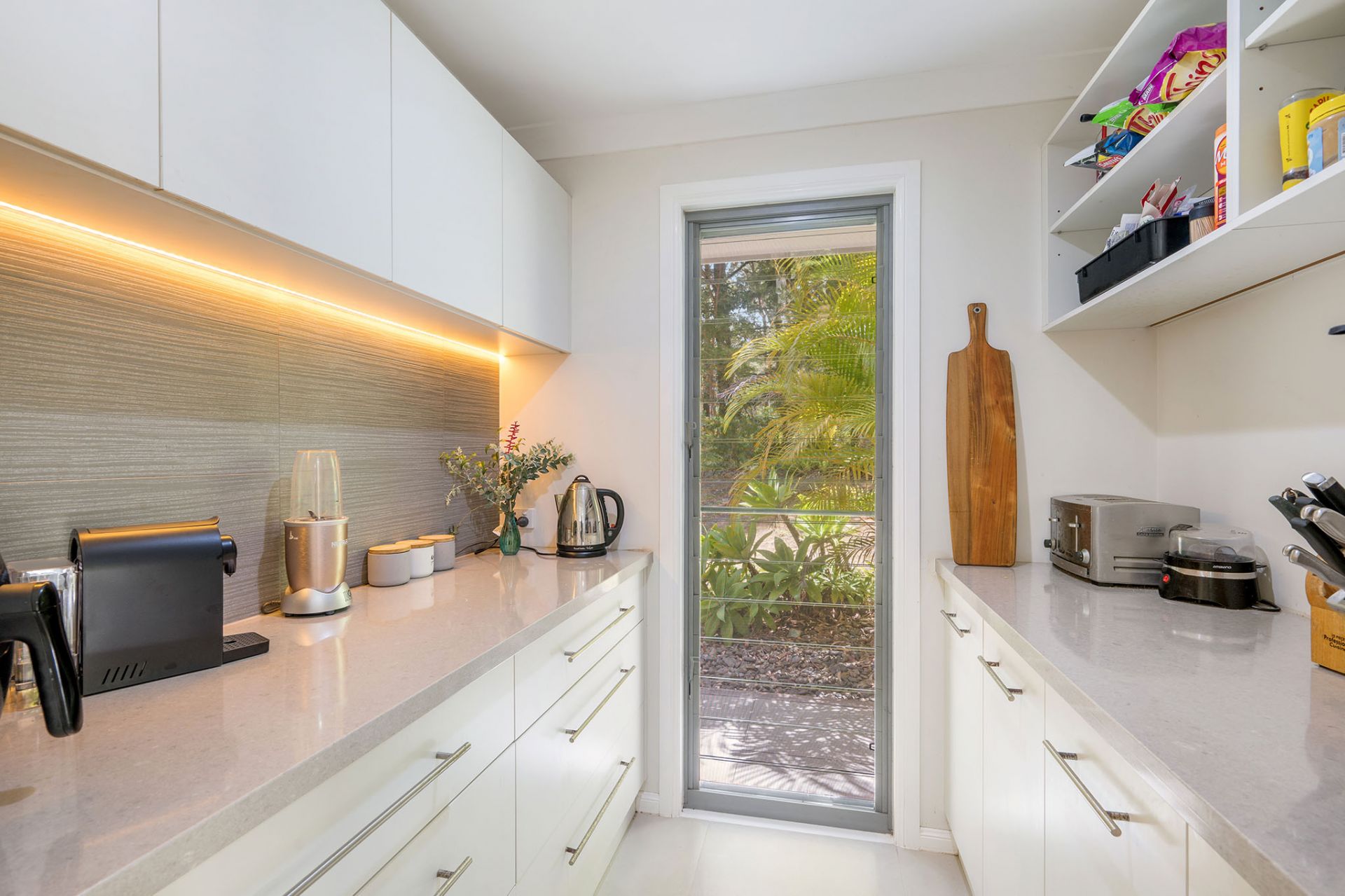 - Well-equipped kitchen with stone benchtops and adjoining walk-in pantry