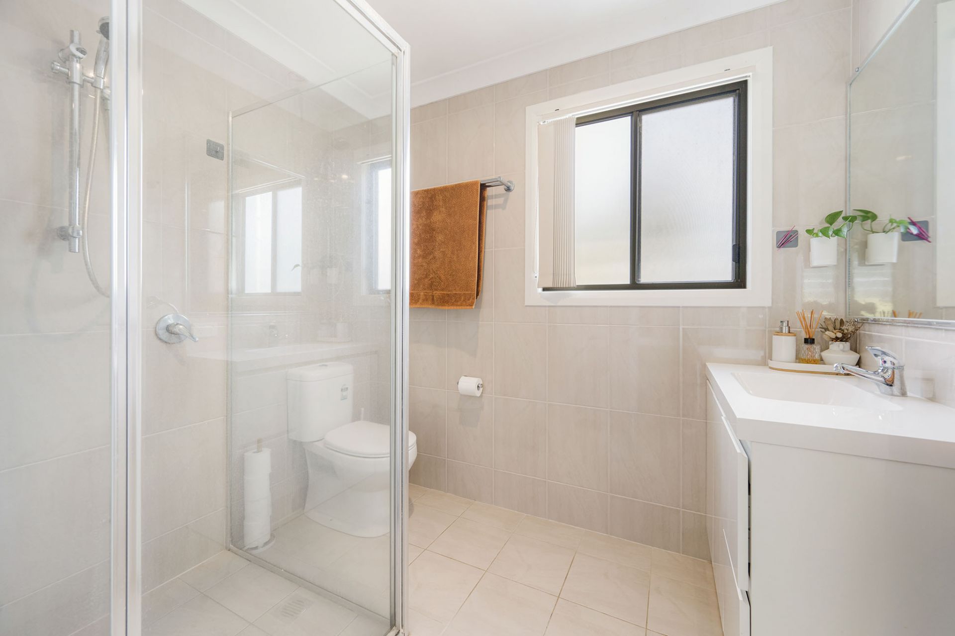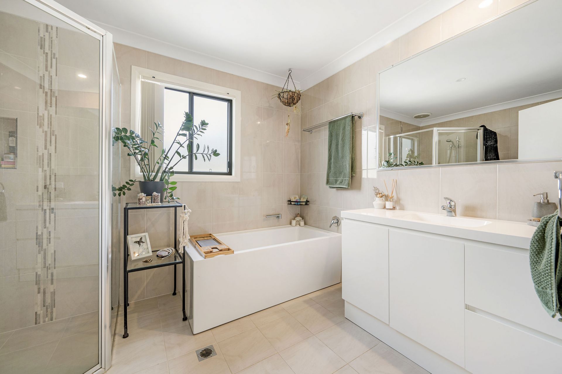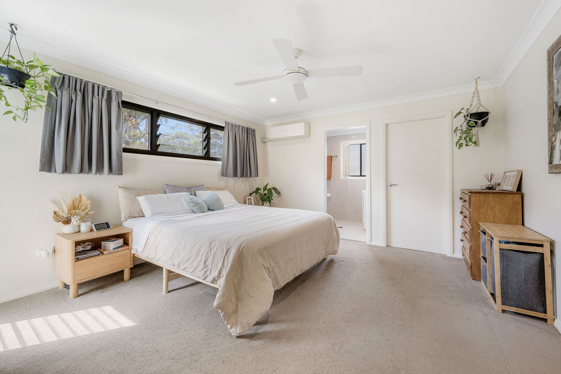 - Master bedroom with A/C, ceiling fan, ensuite & large walk-in robe