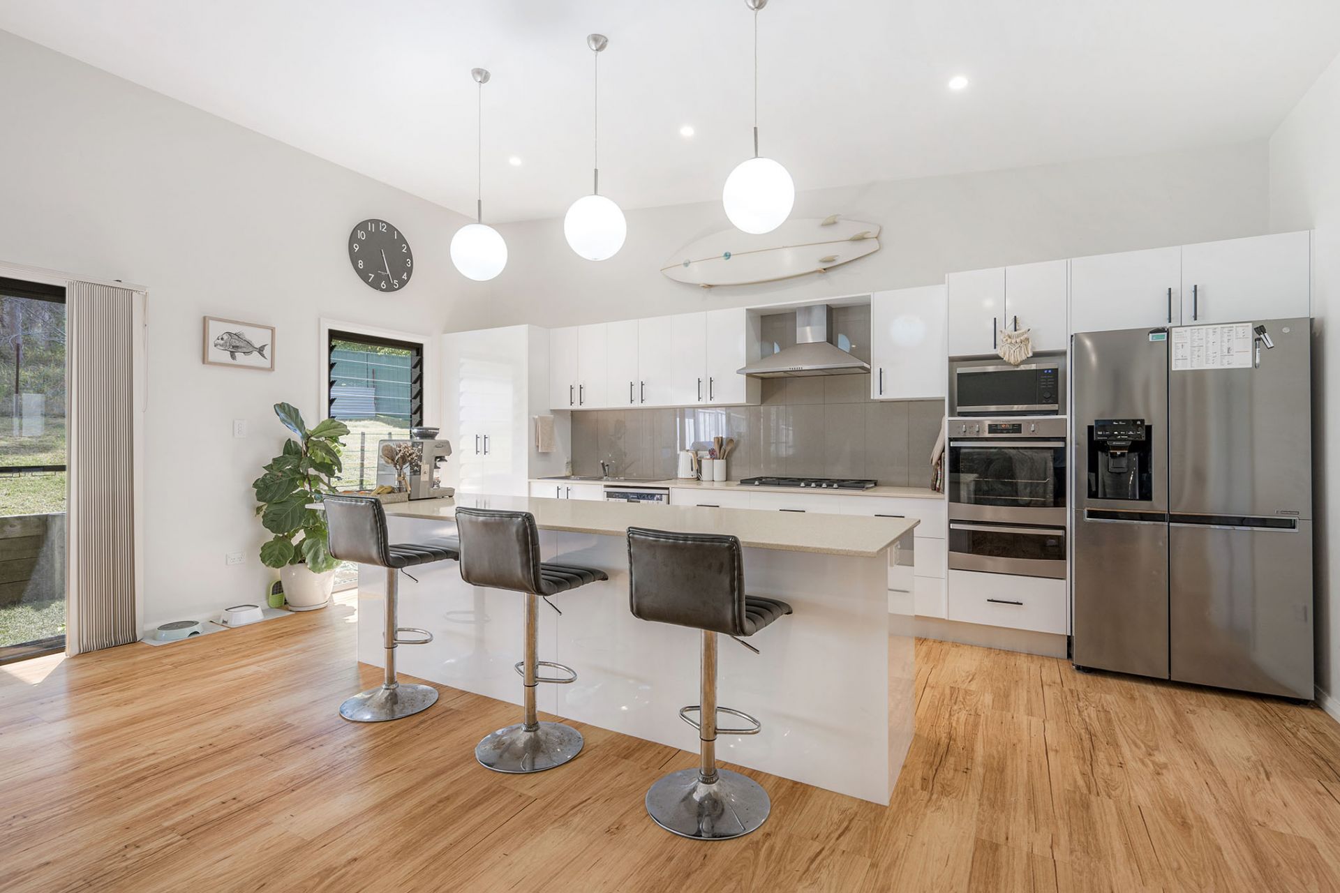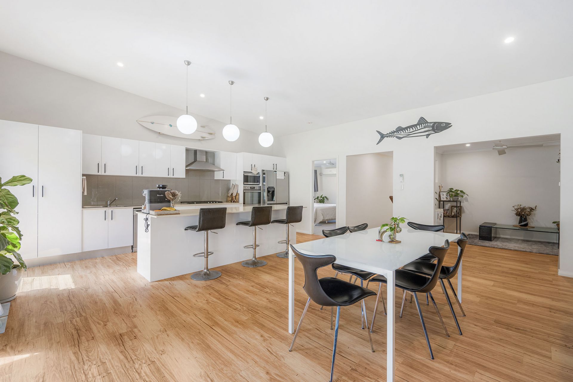 - Open-plan kitchen featuring Caesar stone benchtop & quality appliances