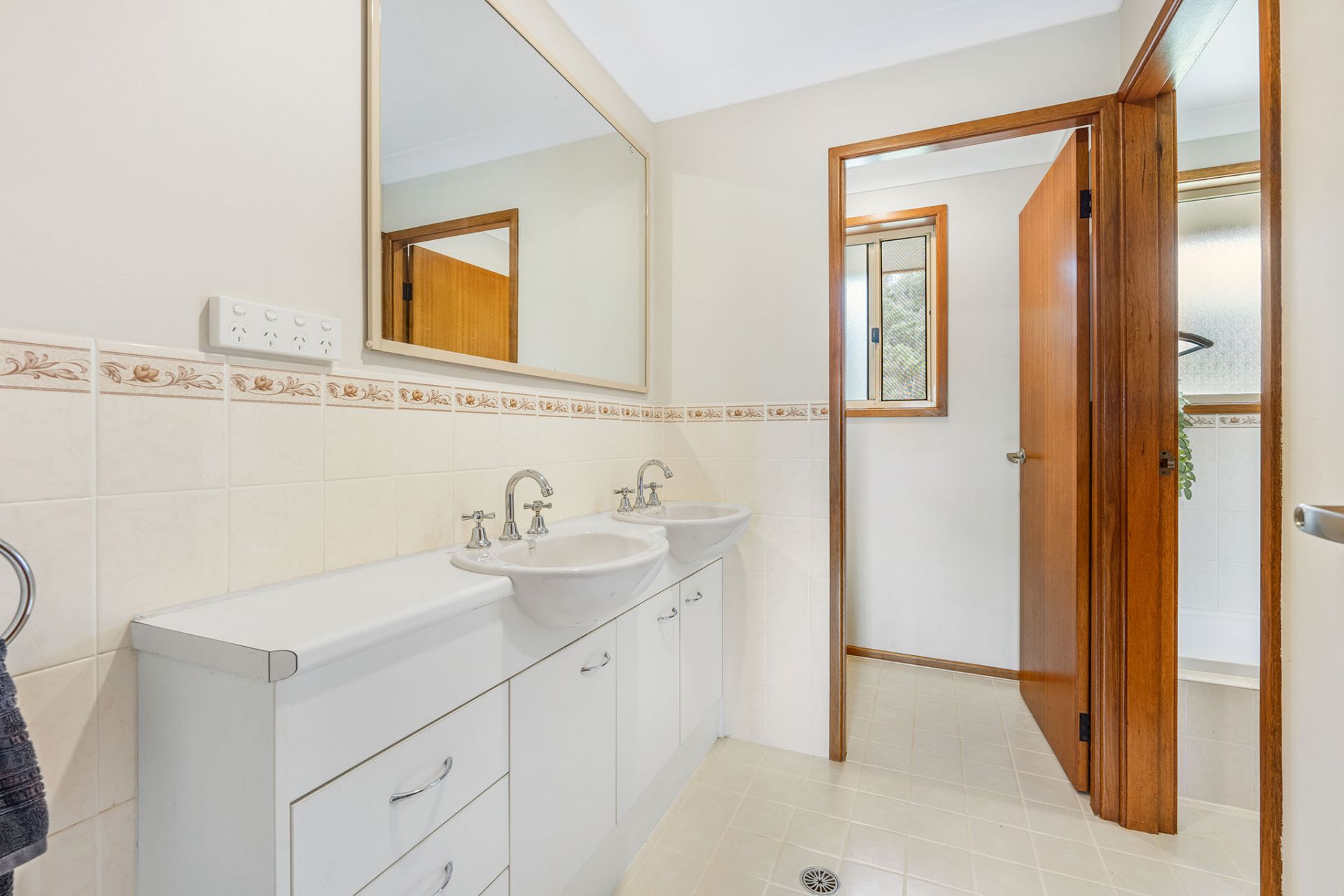 The master bedroom includes built-in robes and direct access to the three-way bathroom, offering a separate vanity and toilet area for convenience. Two additional bedrooms, both with built-in robes, complete the sleeping quarters, ensuring plenty of space for family or guests.
