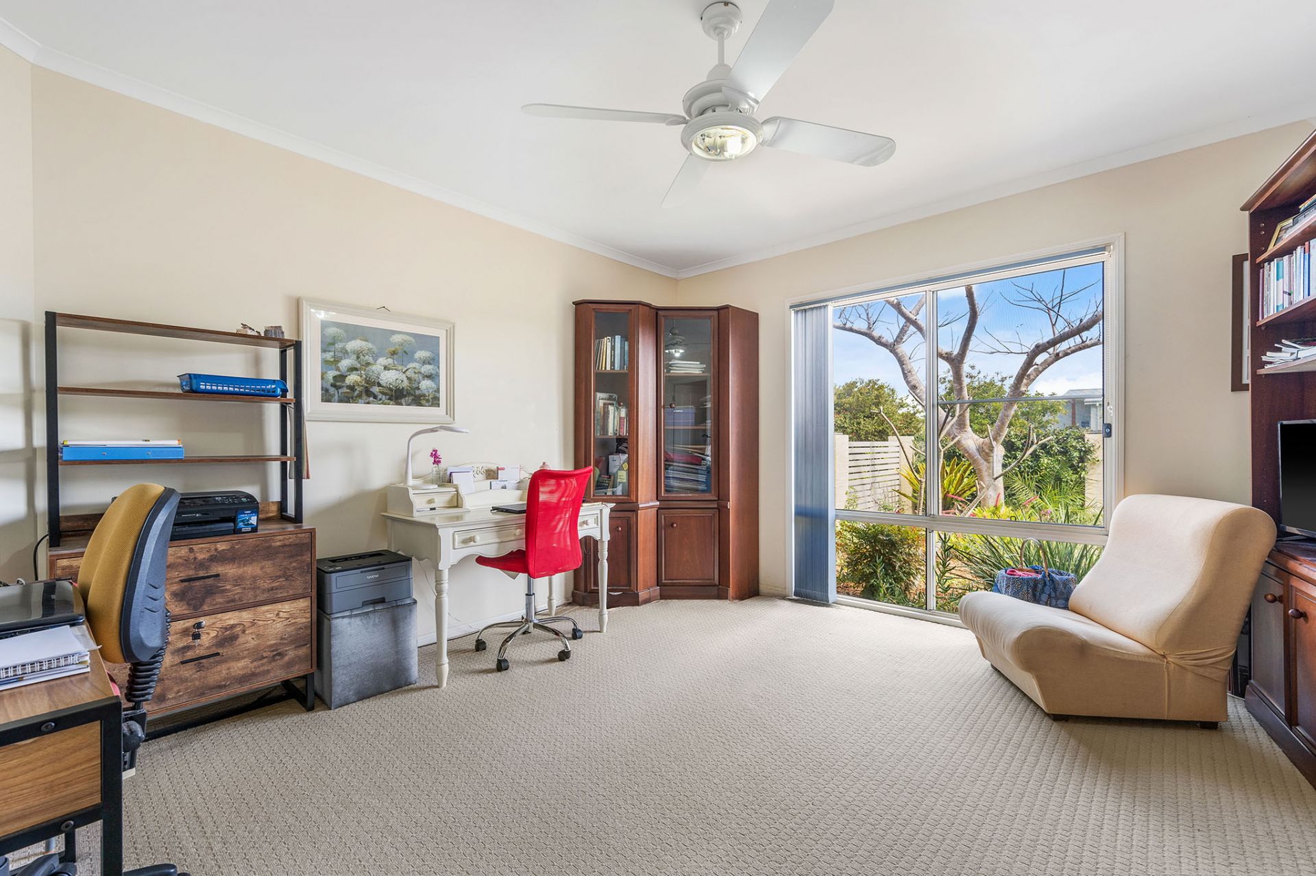 A Norseman wood fireplace adds warmth and character, creating a cosy atmosphere during the cooler months. Outdoors, a covered deck area overlooks the manicured backyard, creating the perfect setting for weekend barbecues or quiet evenings. With ducted air conditioning and solar, the home delivers year-round comfort and energy efficiency. Positioned across from a public reserve and just minutes from the beach, this is a home where coastal living truly comes to life.