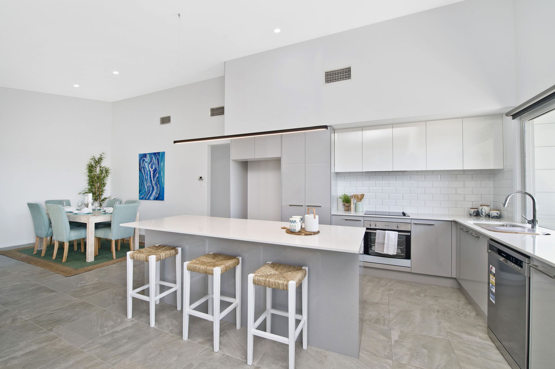 - Kitchen with stone benchtops, soft-close cabinetry & 600mm cooktop