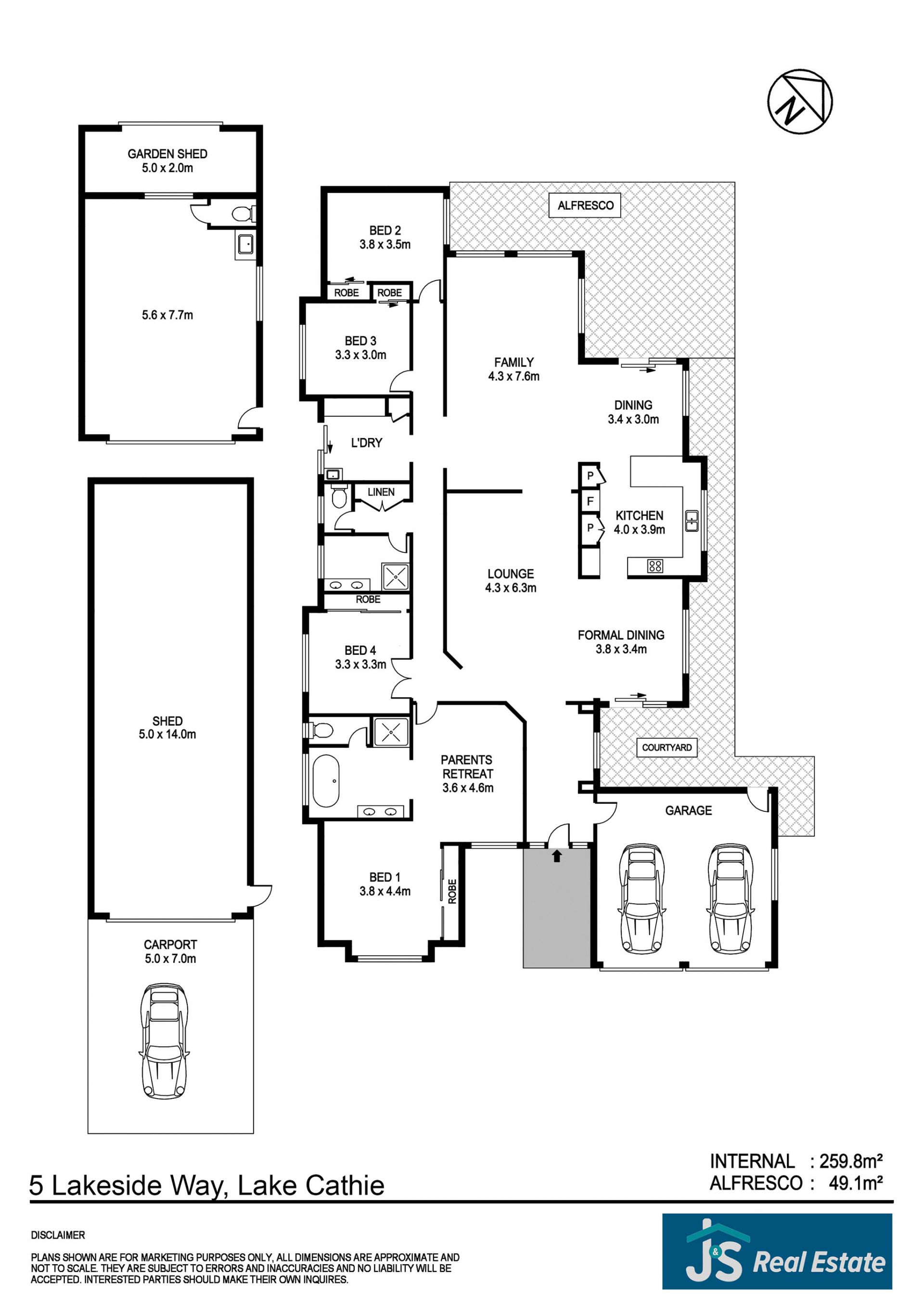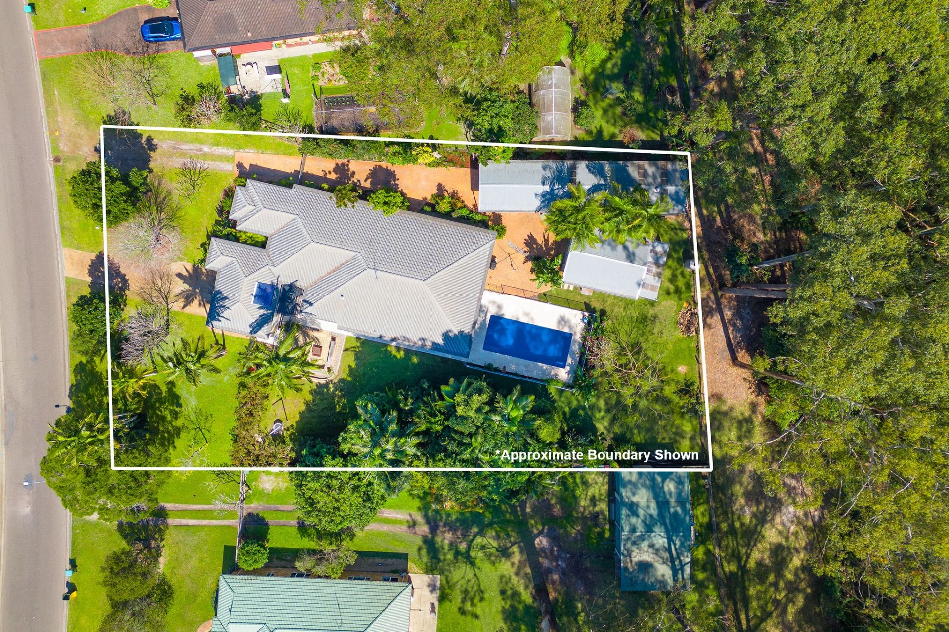 - 7.7m x 5.6m shed with utilities shed at rear – perfect for tools & hobby space