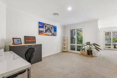 Step inside and you'll discover multiple living zones, including a light-filled lounge overlooking the pool and backyard. The kitchen is the heart of the home, featuring stone benchtops, gas cooking, and abundant storage. Four generous bedrooms provide space for everyone, with the main suite acting as a private retreat complete with a home office, and luxurious ensuite with a freestanding bath.