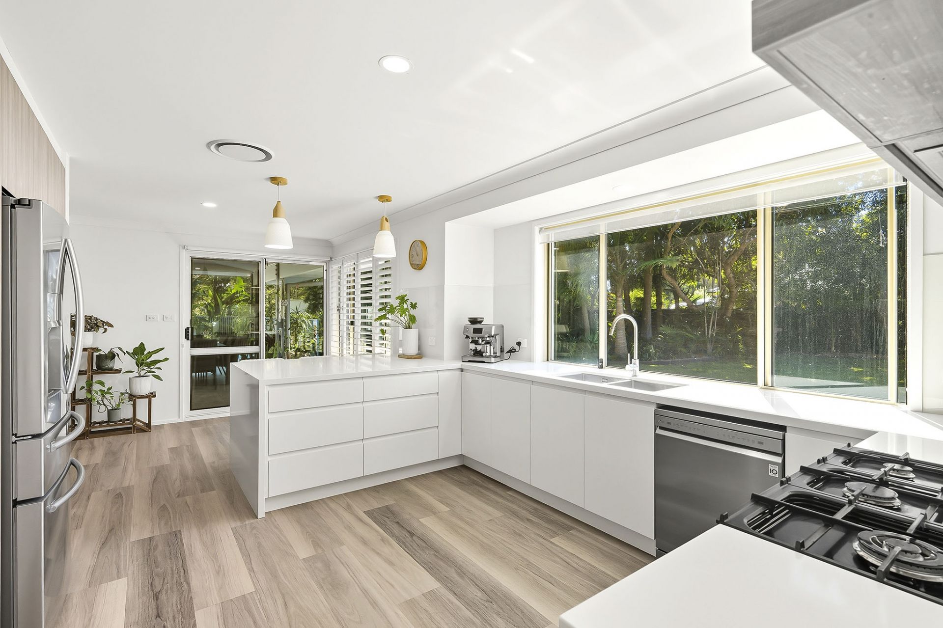 - Well-equipped kitchen with gas cooking, stone benchtops & plenty of storage
