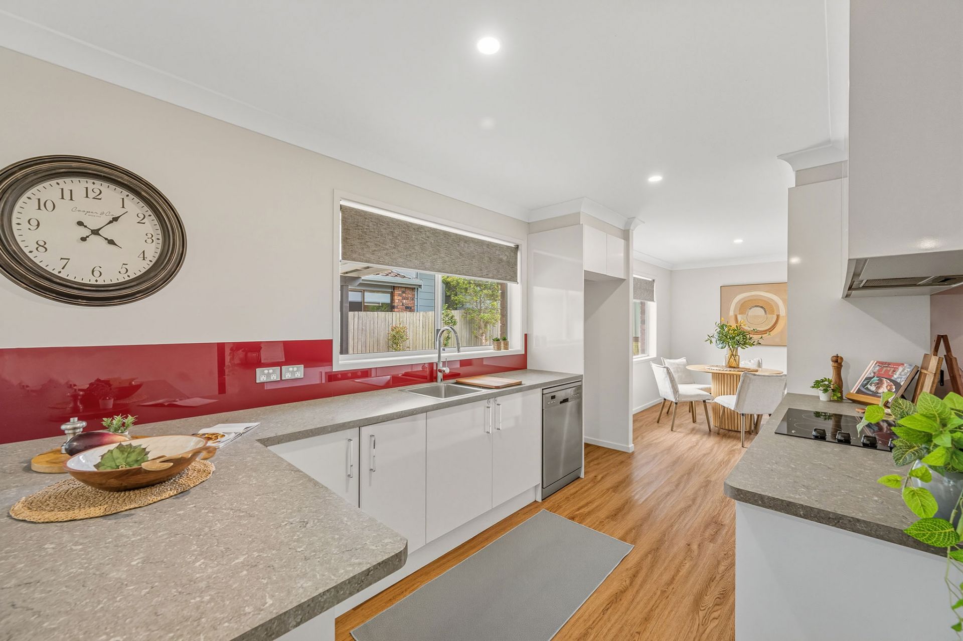 - Modern kitchen with ample bench space, and backyard outlook