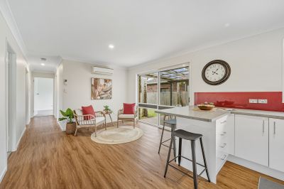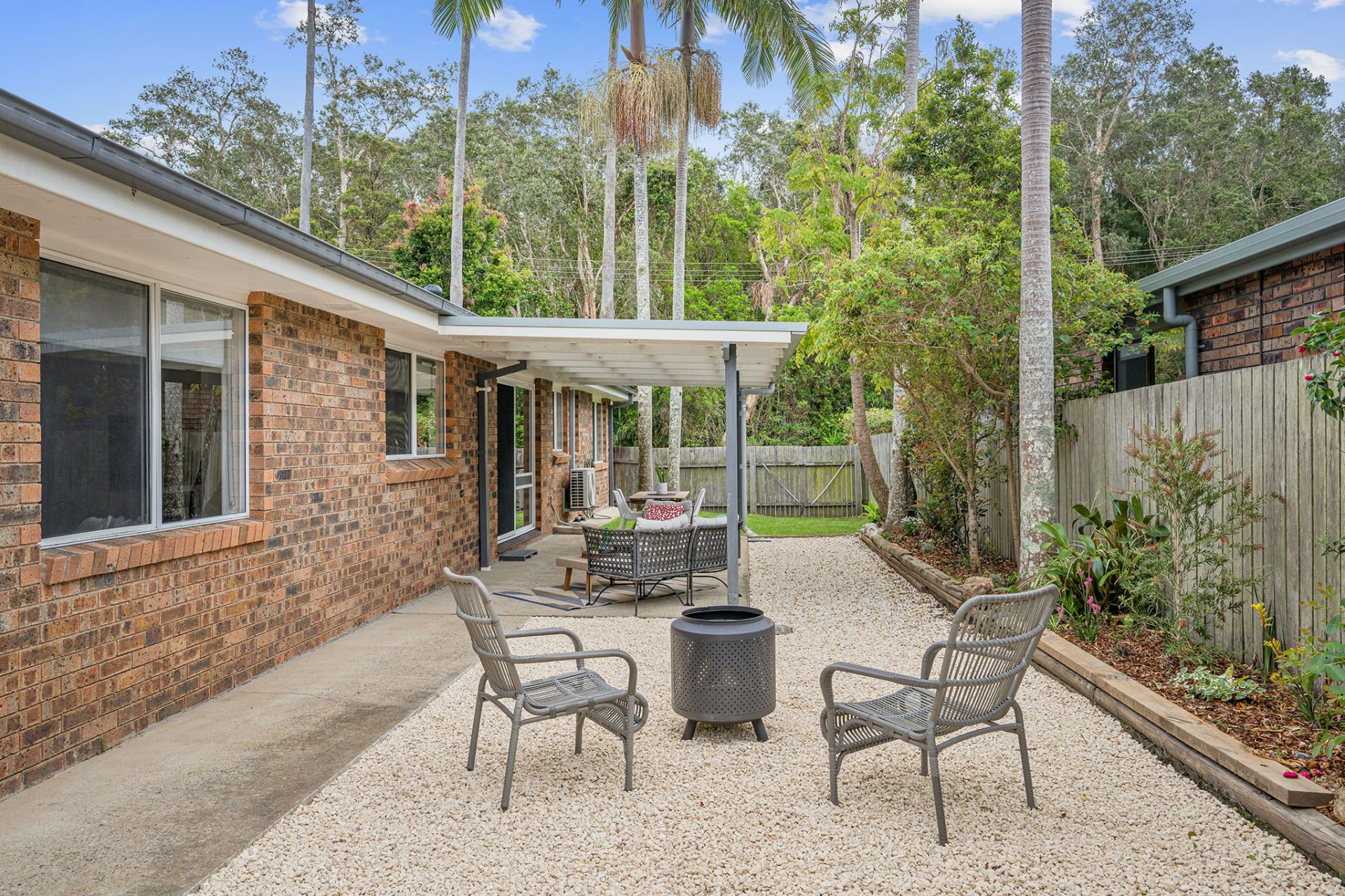 Outdoors, the private and fully fenced backyard is designed for easy entertaining and relaxed weekends, boasting an undercover alfresco area, brick BBQ, firepit zone, and plenty of grassed space for kids and pets to play.