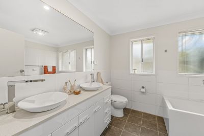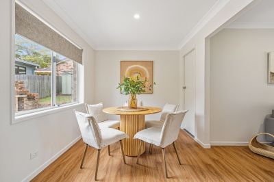 Each of the four bedrooms features built-in robes and tranquil garden views, while the main bedroom enjoys its own ensuite. The stylishly updated main bathroom is complete with a luxurious built-in bath, shower, and toilet for family functionality.